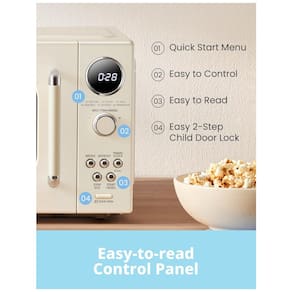 O Forno de Micro-ondas retrô COMFEE de 25,48 litros e 900 watts é inspirado nos bons tempos antigos e aprimorado com estilo moderno e funções práticas. Possui 9 menus automáticos, função de descongelamento fácil, cozimento por micro-ondas com 10 níveis de potência e botão de cozimento expresso. Prepare uma refeição completa com apenas um micro-ondas! Compacto e ideal para apartamentos, casas de férias, escritórios e dormitórios, este forno de micro-ondas pode acomodar facilmente pratos comuns. Com opções de cozimento expresso de 30 segundos em potência máxima e função de aumento de 30 segundos durante o cozimento, basta pressionar o botão INICIAR e o micro-ondas COMFEE fará o resto. A função de descongelamento pode ser escolhida por tempo ou peso, permitindo o descongelamento uniforme e completo de carnes. Equipado com prato giratório com memória de posição, modo econômico de economia de energia, botão de silêncio, relógio e timer de cozinha. O display digital LED brilhante, o painel de controle de fácil leitura e os botões arredondados de toque suave aprimoram ainda mais a experiência do usuário. Além disso, possui trava de segurança de duas etapas para crianças. Este micro-ondas retrô combina design elegante com tamanho compacto, se encaixando em todos os estilos de cozinha e adicionando cor à sua casa. Um presente perfeito para quem você ama.