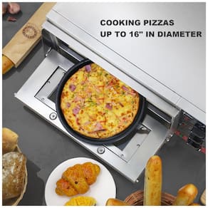 Forno elétrico para pizza com pedra refratária, ideal para pizzas de até 40cm, com controle independente de temperatura superior e inferior e temporizador de 60 minutos.Forno autolimpante