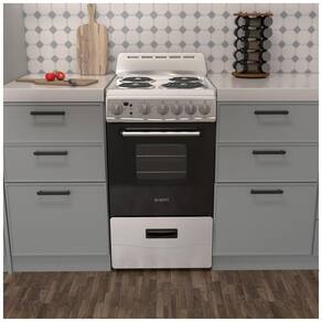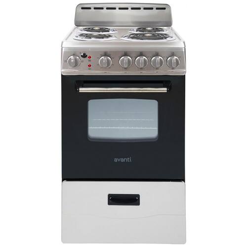 O Forno e Fogão Elétrico Avanti em elegante aço inoxidável é perfeito para economizar espaço na cozinha, sem comprometer o desempenho. Ideal para estúdios, trailers, casas pequenas, propriedades de férias, condomínios e salas de descanso no escritório, este fogão compacto e independente traz funcionalidade de cozimento em tamanho completo para espaços pequenos. Com uma ampla capacidade de forno, você pode assar, grelhar e cozinhar com confiança. Este fogão economizador de espaço possui quatro queimadores - com tigelas refletoras de cromo e sensores de temperatura integrados para garantir distribuição de calor uniforme e cozinhar mais seguro. O forno de assar/grelhar vem completo com uma assadeira, e a porta de vidro emoldurada sem emendas adiciona um toque moderno, permitindo que você verifique sua comida de relance. Recursos adicionais fáceis de usar incluem um termostato eletrônico do forno para controle preciso da temperatura, luz do forno com interruptor liga/desliga e luzes indicadoras de superfície e forno que oferecem segurança adicional e facilidade de uso. Uma gaveta de armazenamento retrátil com alça fornece espaço extra para manter panelas, frigideiras ou assadeiras ao alcance.