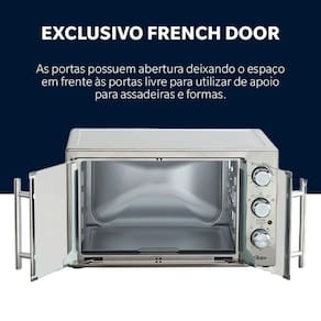 Exclusivo French Door: As portas possuem abertura compacta, ocupam menos espaço na bancada, deixando o espaço em frente às portas livre para utilizar de apoio para assadeiras e formas.