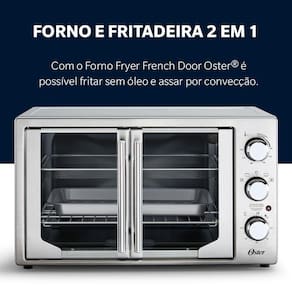A praticidade de dois produtos em um só. Seu novo aliado para receitas especiais. Maximize suas opções na cozinha com o Forno e Fritadeira sem óleo French Door da Oster. Seu design contemporâneo e funções pré-programadas proporcionam maior facilidade para suas receitas.