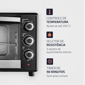 Itens Inclusos: 01 Forno Elétrico; 01 Grelha com Regulagem de Altura e 01 Manual de Instruções com Livro de Receitas