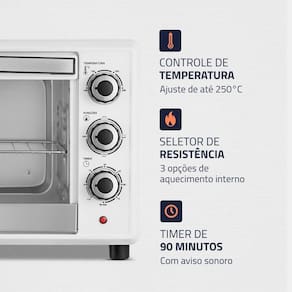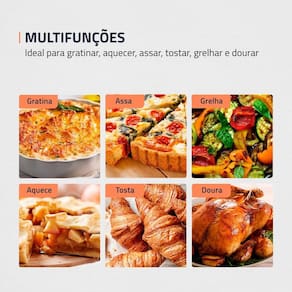 Itens Inclusos: 01 Forno Elétrico; 01 Grelha com Regulagem de Altura e 01 Manual de Instruções com Livro de Receitas