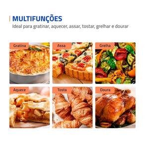 Multifunções: Versátil, pode ser utilizado para aquecer, assar, tostar, gratinar, grelhar e dourar de maneira rápida e eficiente.