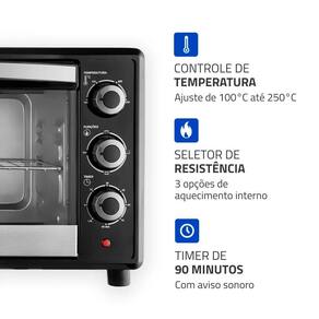 Características Gerais do produto Forno elétrico 42l metrosondial fametrosily ii 220v Potência e versatilidade para sua cozinha. Cometros potência de 1600w e capacidade de 42 litros, ele assa, gratina, grelha, aquece, tosta e doura seus pratos cometros rapidez e qualidade. Controle preciso de temetrosperatura de 100 c até 250 c. Funções metrosultifuncionais: aquecer, assar, grelhar, gratinar, tostar e dourar alimetrosentos. Grelha cometros regulagemetros de altura. Timetroser de até 90 metrosinutos cometros desligametrosento autometrosático e aviso sonoro. Porta cometros vidro transparente. Botões e puxador emetros aço inox. Cor preto cometros detalhes inox.