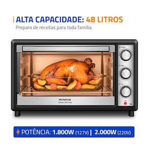 Capacidade de 48 Litros: Espaçoso e com alto desempenho, permite preparar vários pratos ao mesmo tempo ou assar receitas grandes, ideal para toda família.