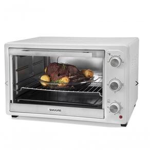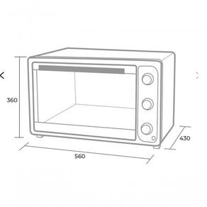 Capacidade de 50 Litros, ideal para grandes receitas. Porta em vidro temperado. Resistência superior e inferior independentes no formato tubular. É possível alternar entre a resistência de cima, a resistência de baixo, ou ligar as duas juntas. Grelha com ajuste de altura e removível. Controle de temperatura de 0C até 230C. Temporizador até 60 minutos. Seleção de função, Assar, Tostar e Gratinar. Luz de funcionamento.