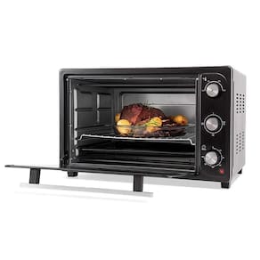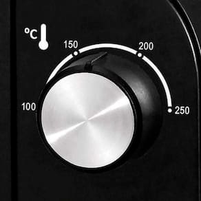 Forno elétrico de bancada com capacidade de 50 litros, potência de 1600W, timer de 60 minutos com alarme, controle de temperatura de 100°C a 250°C e função grill.Forno autolimpante