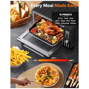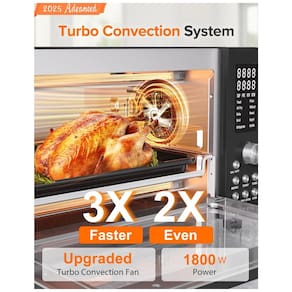 Possui controle digital touch intuitivo com display interativo que permite ajuste preciso da temperatura entre 10°C e 232°C com incremento de 3°C, além de temporizador programável de até 24 horas. A tecnologia patenteada Quick & Even Crisp e Linear T™ Heat garantem preparo uniforme sem pontos frios, mesmo em múltiplos níveis, eliminando a necessidade de virar os alimentos.
