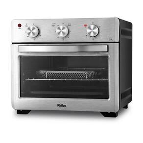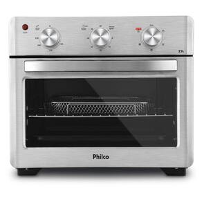 Forno elétrico com função Air Fryer. Possui cesto e assadeira coletora de gordura. Modos de aquecimento: forno de convecção, forno normal, dourador, aquecimento, air fryer. Seletor de temperatura de 100 até 230°C. Possui 6 resistências (4 superiores e 2 inferiores). Iluminação interna e luz de funcionamento. Grelha para assar. Interior esmaltado. 3 níveis de ajuste de altura da grelha. Desligamento automático.Forno autolimpante