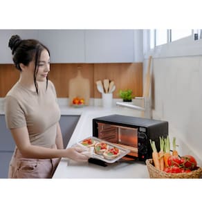 Seu controle de temperatura pode ser ajustado entre 100 °C e 250 °C, oferecendo precisão no preparo dos mais variados pratos: pães, massas, carnes, vegetais e muito mais. O timer de até 30 minutos, com sinal sonoro, permite total autonomia durante o uso. O interior possui revestimento antiaderente, facilitando a limpeza, enquanto a porta de vidro temperado garante maior segurança e visualização dos alimentos. A grade e o coletor de migalhas removíveis proporcionam ainda mais praticidade no dia a dia.