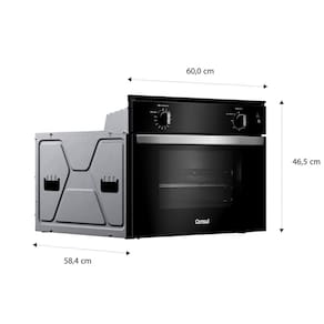 Timer Autodesligamento, revestimento esmaltado e liso, design moderno com acabamento metálico, modo Gratinar, capacidade de 47L, prateleira deslizante.Timer