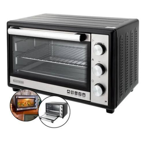 Forno elétrico com grelha cromada e bandeja de alumínio, aço com pintura preta fosca, porta de vidro, puxador em inox, quatro resistências superior e inferior, Timer de 60 minutos e seletor de temperatura até 250C.Forno autolimpante
