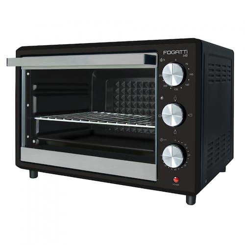 Forno de bancada com capacidade de 40 litros, timer de 60 minutos, termostato até 250°C, bandeja para resíduos, grade interna, luz piloto, grill e dourador, interior antiaderente.Forno autolimpante