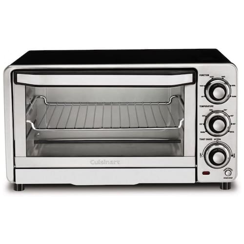Forno elétrico de bancada Cuisinart TOB-40N com 1800W, funções de tostar, assar, grelhar e aquecer, capacidade de 14 litros, controle de tostagem Always Even™, porta de aço inoxidável, interior antiaderente, bandeja de migalhas removível, desligamento automático e grelha deslizante.Forno autolimpante