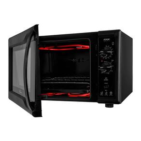 Forno elétrico de bancada com dourador integrado, controle de temperatura ajustável de 50°C a 320°C, timer de 120 minutos com aviso sonoro, revestimento interno EasyClean, porta com vidro duplo, 44 litros de capacidade.Forno autolimpante