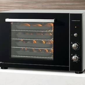 - O Forno Elétrico de Bancada Fischer Turbo Fast 80 litros com Air Convection, agrega praticidade, versatilidade e eficiência para quem necessita cozinhar em quantidades maiores, sendo um modelo semi-industrial, pode ser muito bem utilizado tanto para bares e restaurantes, como em espaços gourmets de condomínios ou até mesmo para quem faz da culinária, sua fonte de renda.