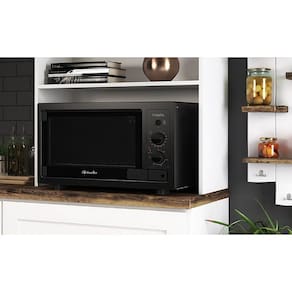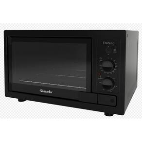 Forno elétrico de bancada Mueller Fratello Grill com capacidade de 44 litros, timer de 120 minutos, grill, prateleira com três opções de altura e bandeja coletora de resíduos.Forno autolimpante