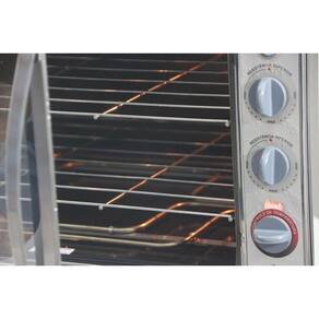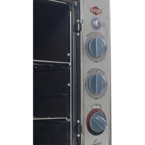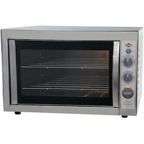 Características: Gabinete externo em aço inoxidável. Gabinete interno com revestimento easy - clean. Frontal em aço inoxidável. Termostato de precisão (50º - 300ºC). 04 Resistências blindadas (2 sup.1500w e 2 inf 1500w). Puxador em aço inox. 02 Chaves de controle da temperatura (mínimo, médio e máximo). Visor iluminado de temperatura. Porta removível de vidro cristal temperado. Isolamento térmico reforçado com lã de vidro. Lâmpada interna com vidro protetor. Bandeja para resíduos. 02 prateleiras removíveis em 03 posições. Instalação elétrica certificada pelo inmetro. Potência: 3.000 watts. Volume: 65 litros. Termostato de precisão (50°C a 300°C). Consumo máximo à 300°C:1,0kw/h