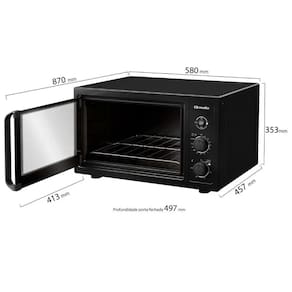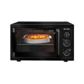 Forno elétrico de bancada com 50L de capacidade, 1800W de potência, grill dourador, luz interna, timer com autodesligamento e função manter aquecido. Interior Total Clean e isolamento térmico inteligente.Forno autolimpante