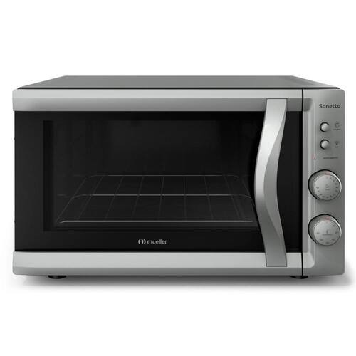 Tipo de forno: Forno Elétrico de Bancada | Porta do forno: Com duplo vidro | Timer: sonoro de até 120 minutos | Largura (cm): 58cm | Marca: Mueller | Peso (Kg): 12,6Kg | TIpo de montagem: de piso | Controle de temperatura: Sim | Prateleiras do forno: 1 prateleira com três níveis de altura | Altura (cm): 36cm | Grill: Sim | modelo: Forno Sonetto Titânio Cor: Titânio Voltagem: 127V