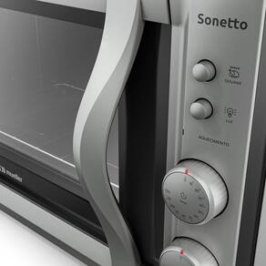 O forno elétrico Sonetto Titânio faz toda a diferença na decoração da sua cozinha. É completo, com luz interna, grill, e timer de até 120 minutos, para maior liberdade de desenvolver outras atividades enquanto o utiliza. Seu interior total clean traz mais praticidade na limpeza, além de oferecer capacidade de 44 litros, suficiente para o preparo dos mais variados assados. Além disso, o Sonetto Grafite tem duplo vidro na porta e isolamento térmico total que retém o calor em seu interior gerando economia de energia e segurança para toda sua família.