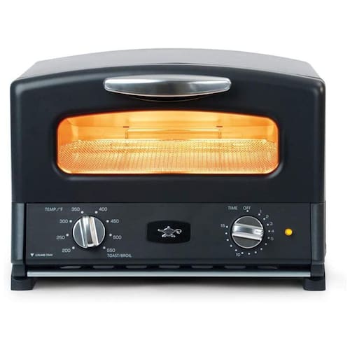 Forno elétrico de bancada retro com tecnologia de aquecimento de grafite, calor instantâneo em 0,2 segundos, termostato regulável e timer.Bandeja para resíduos