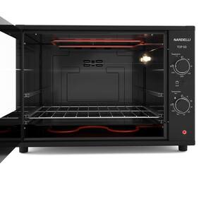 O Forno Elétrico De Bancada Nardelli Top 60 Litros Preto 220V une design moderno, praticidade e eficiência para sua cozinha. Compacto e elegante, tem capacidade de 60 litros, ideal para preparar frangos inteiros, bolos, lasanhas, tortas e assados variados.
