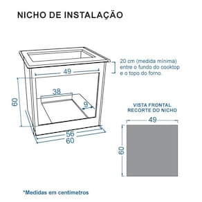 Forno elétrico de embutir com capacidade de 50 litros, controle de temperatura, função grill, timer grill, revestimento Easy Clean e porta removível.Timer