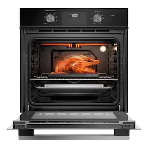 "Descubra o prazer de cozinhar com o Forno Eletrico de Embutir 80L Grill. Com uma capacidade generosa de 80 litros, este forno de alta potencia (2750 W) permite preparar refeicoes para toda a familia ou para ocasioes especiais. Seu design elegante em preto, com acabamento em metal e vidro, e perfeito para qualquer estilo de cozinha. As dimensoes do forno sao de 59,5x59,5x59 cm, com um peso de 31,50 Kg, o que garante um encaixe perfeito e seguro em seu espaco de cozinha.