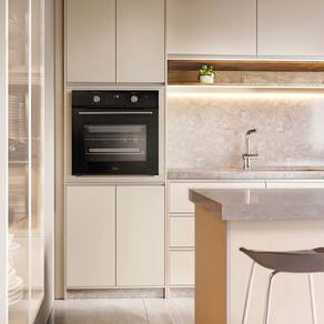 Este forno eletrico de embutir nao e apenas belo, mas tambem extremamente funcional. Ele possui um grill integrado, perfeito para dourar e gratinar seus pratos favoritos. A luz interna permite um acompanhamento preciso do cozimento, enquanto o timer e o desligamento automatico garantem a seguranca e a perfeicao em cada preparo. Acompanha uma grade, facilitando a organizacao interna para diferentes tipos de preparo.
