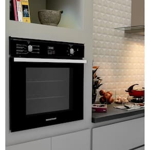 Novo forno elétrico de embutir Brastemp. Assados simultâneos e 7 opções de funções para o ponto certo por dentro e por fora.