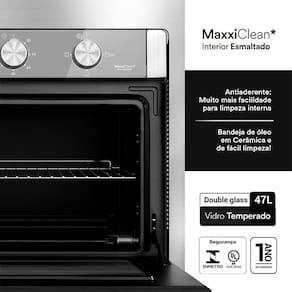 SimO Forno Elétrico Eos Premium chegou para ajudar você a tornar sua vida muito mais prática e segura. Com 47L de volume interno ele permite que você prepare alimentos para toda a família com muita praticidade. Para garantir sua segurança, o Forno EOS não precisa de gás para funcionar, sendo totalmente elétrico, eliminando o risco de vazamentos ou explosões de gás. Com iluminação interna o forno Eos permite você acompanhar o cozimento sem abrir a porta. Com timer de 120 minutos e controle de temperatura de até 230C você ganha mais versatilidade ao preparar suas deliciosas receitas, além de poder controlar qual das duas resistências será utilizada, sendo apenas a superior, a inferior ou ambas - para a perfeita distribuição da temperatura internamente.