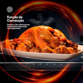 Distribuição uniforme do calor com ventilação interna, garantindo resultados consistentes em todos os tipos de preparo.