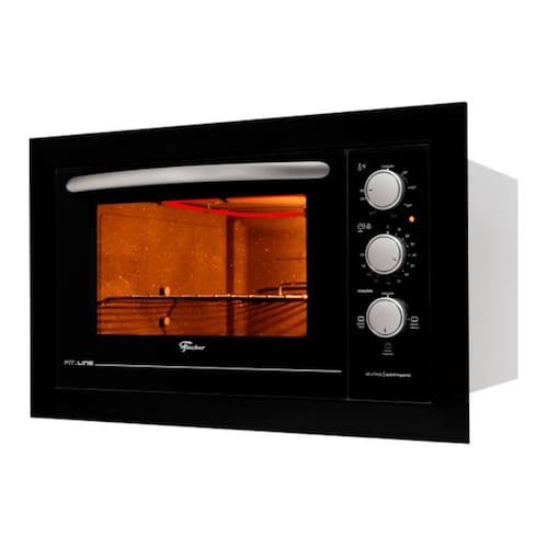 O Forno Elétrico de Embutir Fischer Fit Line 48 litros foi desenvolvido para oferecer praticidade, eficiência e um design moderno para cozinhas planejadas. Com frontal em aço carbono ou inox, ele entrega um visual sofisticado e harmoniza com diferentes estilos de ambiente. Possui isolamento térmico total, porta com vidro duplo que conserva o calor interno e contribui para a economia de energia, além de dourador para acabamentos perfeitos nas receitas. O interior conta com revestimento autolimpante, facilitando a manutenção diária, bandeja esmaltada para resíduos, grade cromada removível e bandeja coletora que auxiliam no preparo dos alimentos com organização e segurança. O forno oferece controle automático de temperatura de 50C a 320C, timer programável de até 120 minutos e controle independente das resistências, garantindo mais precisão no preparo. Com iluminação interna, permite acompanhar o processo de cozimento sem a necessidade de abrir a porta. Disponível nas cores Preto, Branco e Inox, é a escolha ideal para quem busca funcionalidade com acabamento elegante. Dimensões: Altura 42 cm, Largura 66,5 cm, Profundidade 55 cm, Peso 16 kg.