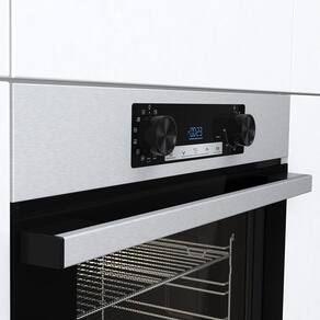 Com o Forno Elétrico de Embutir Hisense 77 Litros Preto e Inox - 220 Volts tudo o que você coloca é cozido uniformemente graças à grande cavidade ligeiramente arredondada que, juntamente com aquecedores especiais posicionados de forma inteligente, permite uma distribuição de ar quente excelente e uniforme. Ou seja, crocante por fora e suculento por dentro. A grande porta de vidro e a excelente iluminação interna permitem que você verifique sua comida a qualquer momento sem abrir a porta e deixar sair o ar quente.