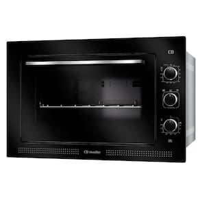 simForno Elétrico de Embutir Mueller50LMFE50K: forno compacto e eficiente de 50 litros, acabamento em vidro preto elegante, 7 funções de cocção, temperatura ajustável até 300 C, interior esmaltado Total Clean para fácil limpeza, porta com vidro duplo e timer digital com autodesligamento ideal para deixar sua cozinha moderna e funcional.