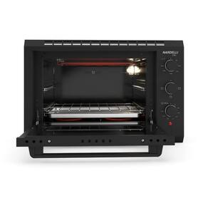 Design moderno, alta performance e precisão no preparo. Capacidade de 50 Litros. Termostato até 300°C. Timer de 120 minutos com desligamento automático. Grill e dourador. Interior antiaderente. Isolamento térmico reforçado. Luz interna e luz piloto. Porta com abertura em dois estágios. Moldura em aço pintado com ventilação integrada.Forno autolimpante