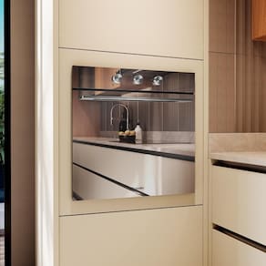 Forno Elétrico Digital de Embutir Mueller 70 L Espelhado MFE70K (220 V): forno moderno com acabamento espelhado, capacidade para 70 litros, potência de 2.800 W, 7 funções (incluindo função fryer), interior com esmalte Total Clean, porta em vidro duplo com isolamento térmico, timer com autodesligamento e prateleiras ajustáveis. Beleza e desempenho para transformar sua cozinha planejada.