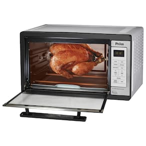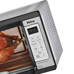 O Forno Elétrico Digital Rotisserie, da Philco, possui capacidade interna de 32 litros e sistema giratório 360° que doura os alimentos de todos os lados, rotisseria que assa por igual frangos inteiros e peças de carne, deixando os alimentos mais nutritivos, suculentos e saborosos.