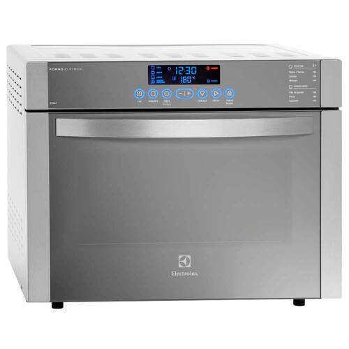 - Painel Blue Touch. - Display Eletrônico. - Puxadores externos. - Prateleiras deslizantes antiaderente. - Função Grill. - Relógio. - Seletor de funções.Forno autolimpante