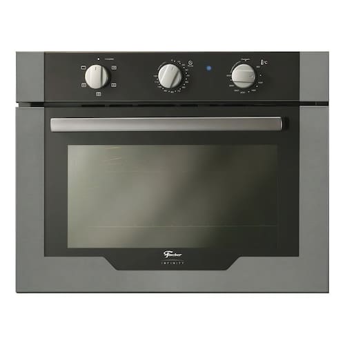 Forno elétrico de embutir com acabamento em inox escovado, tecnologia Turbo Convection para distribuição uniforme de calor, grill potente, timer programável e iluminação interna.Timer
