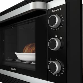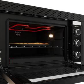Sempre que desejamos fazer uma receita, pensamos nos ingredientes, não é mesmo? Mas, além disso, para que o prato seja um sucesso, é de suma importância termos um forno de qualidade. Para isso trouxemos à você o Forno Elétrico de Embutir Decoratto de 44 litros!!! O Forno Decoratto possui design moderno, sofisticado e com funcionalidades brilhantes. O frontal dele é em vidro, contém luz interna para que possamos ver os alimentos que estão sendo preparados, grill dourador com potência 900W e potência inferior de 900W com controle independente das resistências. Outras funções do forno são o timer dupla função e contínuo de 120 minutos com desligamento automático, controle automático de temperatura, grade com 3 opções de altura e bandeja de resíduos esmaltada. Além de tudo as portas contém isolamento térmico com dupla vedação e conta com dobradiças de duplo-estágio. A moldura é preta e contém grade de ventilação e puxadores em metal. Já imaginou um forno maravilhoso desse para preparar o seu almoço de domingo com praticidade? Invista já nesse eletrodoméstico indispensável para a sua cozinha!!! Características: Material da estrutura: Chapa de aço pintada de preto, moldura pintada em preto fosco e vidro duplo Abertura da porta: Vertical com duplo-estágio Timer: Timer Dupla Função - Contínuo e de até 120 minutos Alarme sonoro: Sim Botões do painel: Plástico Luz interior: Sim Controle de temperatura: Sim Variação de Temperatura: 50ºC a 300ºC Potência total: 1800w, sendo 900w superior e 900w inferior Consumo aproximado de energia kw/h : 0,61 Bandeja para resíduos: Sim Capacidade do forno: 44 litros Medida do nicho para instalação LxP : 65cm x 51cm Dimensões: Altura: 43 cm Largura: 68 cm Profundidade: 52 cm Peso: 14,20 kg INFORMAÇÕES IMPORTANTES - Garantia de fábrica: 12 Meses após o recebimento do produto. - Os móveis serão entregues desmontados e com manual de montagem. - Não nos responsabilizamos pela montagem/instalação. Verifique a complexidade antes de decidir montar sozinho, ou contrate um profissional de sua confiança. - Montagem, instalações e desmontagens devem ser contratadas pelo comprador.