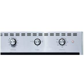 Forno de embutir com 60 litros de capacidade, timer de 120 minutos, controle de temperatura até 300°C, dourador, interior Easy Clean, botões retráteis e moldura em Inox com ventilação.Timer