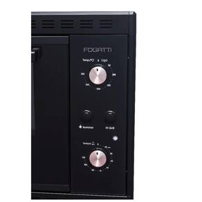 Forno de Embutir com 45 litros de capacidade, timer de 120 minutos, controle de temperatura até 300°C, grill e dourador, interior autolimpante, botões retráteis, luz interna com protetor, luz piloto, isolamento térmico, moldura em aço pintado com ventilação embutida.Timer