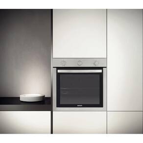 Forno elétrico de embutir com 7 funções, capacidade de 73L, painel mecânico, acabamento em aço inox com proteção anti-digitais, ventilação interna e sistema de resfriamento.Timer