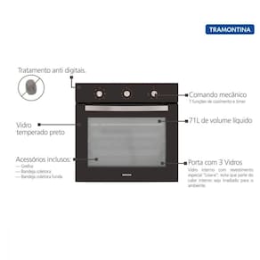 Forno elétrico de embutir Tramontina New Glass Cook com 7 funções, capacidade de 71 litros, comandoTimer