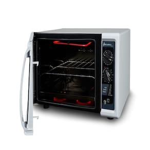 Forno elétrico Fischer Hot Grill Line com capacidade de 44 litros, timer de até 120 minutos, controle de temperatura de 50°C a 320°C, dourador, porta com vidro duplo e isolamento térmico total.Forno autolimpante