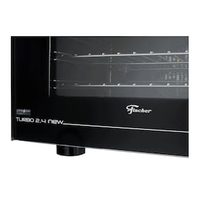 Forno elétrico de bancada com tecnologia turbo para cozimento uniforme e mais rápido. Possui 3 funções: Grill/Dourador, Air Convection Turbo e Air Fryer. Controle de temperatura ajustável de 50°C a 300°C. Interior easy clean para facilitar a limpeza. Porta com vidro duplo e isolamento térmico para maior segurança. Puxador de alumínio escovado e corpo externo em aço pintado.Forno autolimpante
