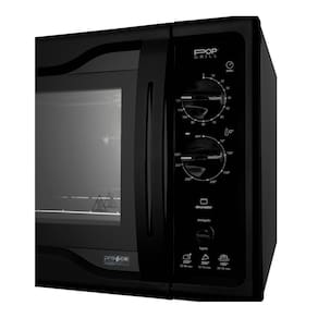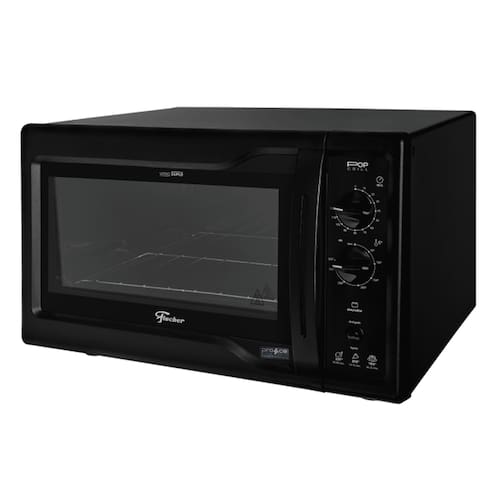Forno elétrico de bancada com dourador integrado, controle de temperatura ajustável de 50°C a 320°C, timer de 120 minutos com aviso sonoro, revestimento interno EasyClean, porta com vidro duplo, 44 litros de capacidade, 1750W de potência.Forno autolimpante